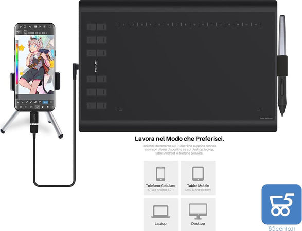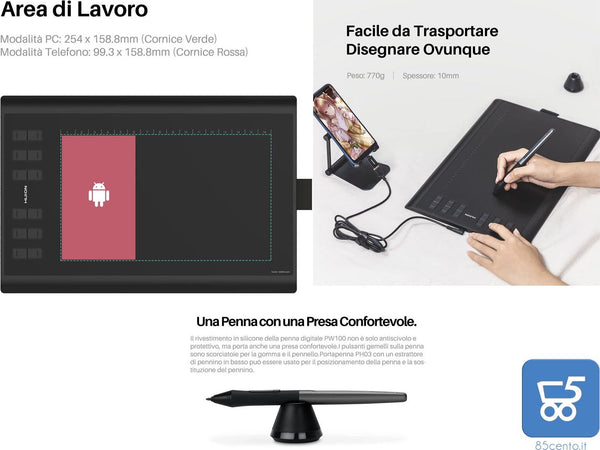 HUION H1060P Tavoletta Grafica con Area di lavoro da 10 x 6,25 pollici (dispositivi Android supportati) con Supporto per Stilo senza Batteria Insegnamento Lavoro Online Conferenze Web