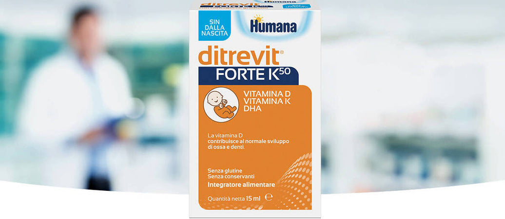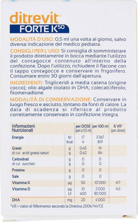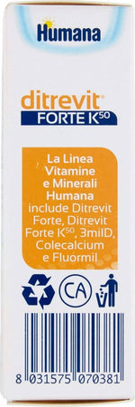 Humana Ditrevit Forte K50 Integratore Alimentare per Bambini - 15 ml con Vitamine D E K e DHA