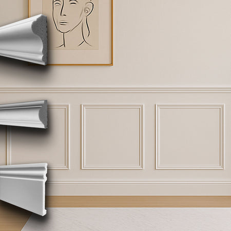 Kit 2 metri di parete Boiserie "Decorativa" (senza pannelli, solo estetica) in polimeri bianca (L200xH120) verniciabile