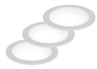 Kit tre faretti a incasso tondi, diametro 7 cm, con struttura in alluminio bianco, a una luce, installabili su soffitto ribassato. Lampadine led incluse ciascuna da 5 watt e 4000 kelvin. Disponibile anche nei colori nickel e oro. Kit faretti a incasso a Led 3 lampadine SMD da 5 watt , installabile a Soffitto. Misura in cm HxL 3,2x7. Lampadine incluse si/no: Si Classe A+ da Kelvin 4000 Lumen 230x3. Colore: Bianco.