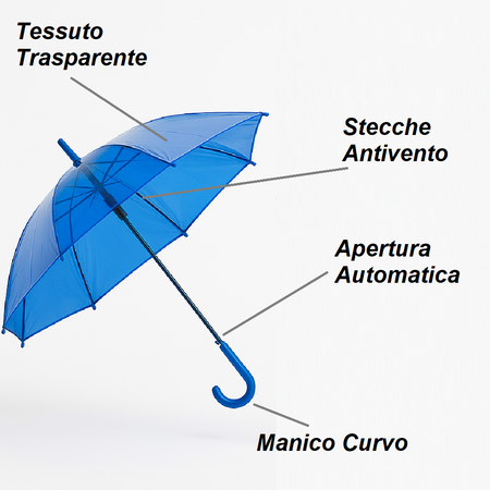 Kit 4 Ombrelli Trasparenti Automatici PVC Antivento Manico Curvo 8 Stecche Fibra di Vetro