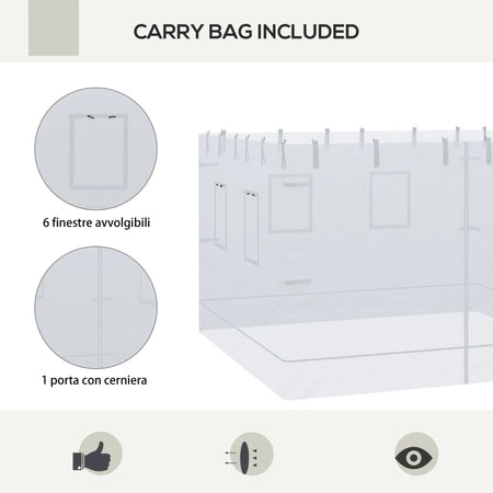 Kit 4pz Pareti per Gazebo 3x3 in Nylon 3pz Zanzariera 6Finestre 1pz Porta con Cerniera
