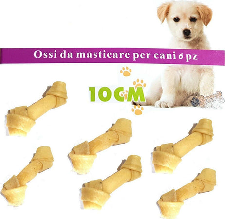 Kit 6 Ossa Cane Da Masticare Pelle Bovino Osso Cani 10cm Snack Annodato Igiene