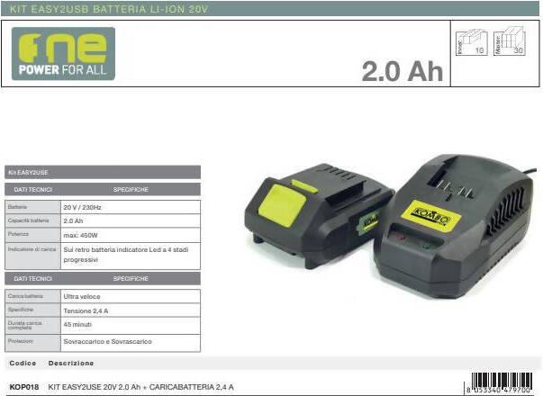 Kit Easy 4 Pro Batt. Li-Ion 4.0 Mah 20 v + Caricatore Indicatore LED 4 Stadi Con Switch per Verificare Carica Residua Kombo