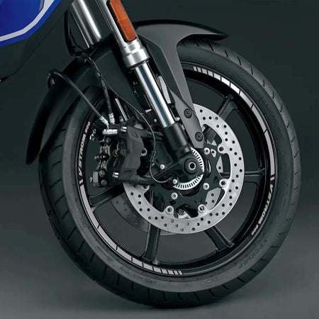 Adesivi per profilo ruote moto Suzuki V-Strom 800 SE. Kit di strisce adesive per ruote moto Esclusivi - Labelbike®.