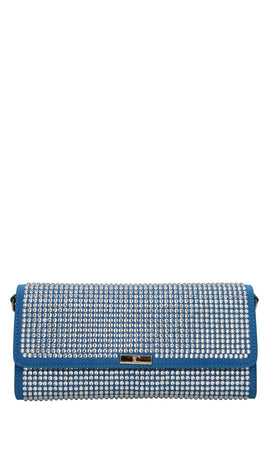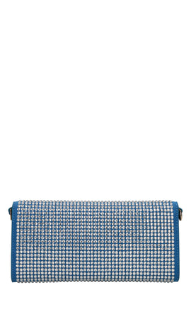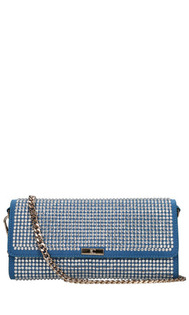 Borsa in ecopelle ecocamoscio e strass. 1 Comparto. Chiusura con patta con bottone automatico. Tracolla golden chain rimovibile.