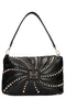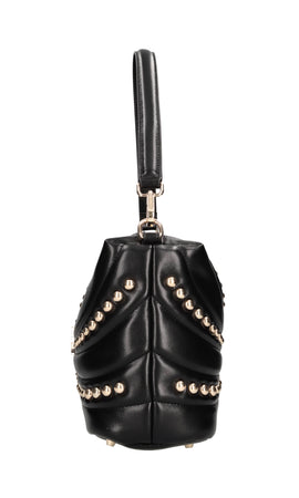 Borsa Oyster in ecopelle. Decorata con borchie color oro. Un comparto. Chiusura con zip. Manico e tracolla golden chain ed ecopelle removibili.