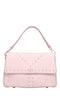 Borsa Frivolous in pelle e borchie. Un comparto. Dettagli in metallo tono su tono. Chiusura con bottone a scatto. Tracolla chain tono su tono in pelle removibile.