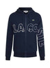 Lacoste Felpa Uomo Blu Con Cappuccio Maxi Logo Scritta LACOSTE Coccodrillo Verde Ricamato Felpa Con Cerniera Full Zip e Tasche