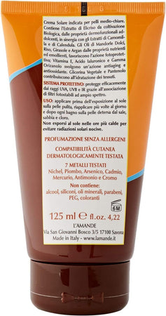 L'amande Crema Solare SPF 25 Viso e Corpo 125 Ml Camomilla e Calendula Protezione Media BIO