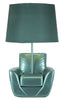 Lampada da tavolo in resina turchese a forma di poltrona ispirata agli anni '70. Completa di paralume in tessuto turchese.