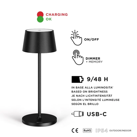 Lampada da tavolo a batteria, a LED, senza fili, ricaricabile, USB, in
