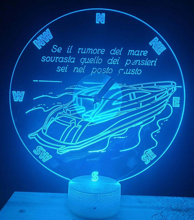 Lampada orologio plexiglass idea regalo luce led rgb barca mare marinaio rosa dei venti