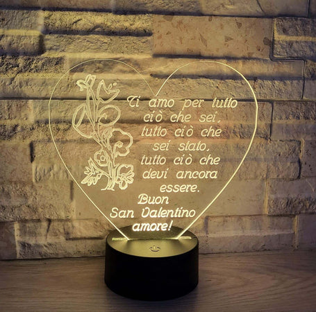 Lampada plexiglass lume regalo san valentino luce led rgb cavo usb e batterie