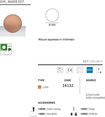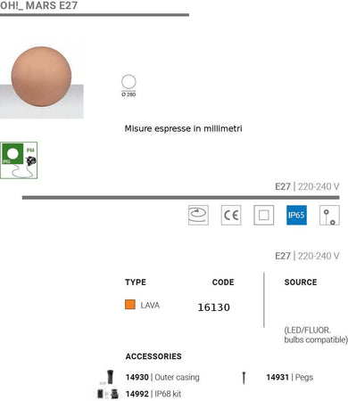 Lampada terra classica Linea Light Group OH MARS LED sfera polietilene