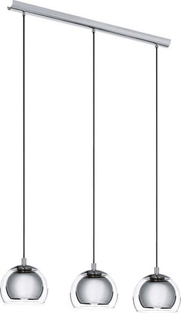 La lampada a sospensione ROCAMAR è composta da tre paralumi in vetro trasparente a forma di sfera con, all'interno, un secondo paralume in metallo color cromo.. Questa struttura scende da una base rotonda sempre in metallo color cromo. Il lampadario si distingue per il suo design semplice ed è particolarmente adatto ad arredamenti moderni del soggiorno o della sala da pranzo. Le lampadina, con attacco E27, non sono incluse.