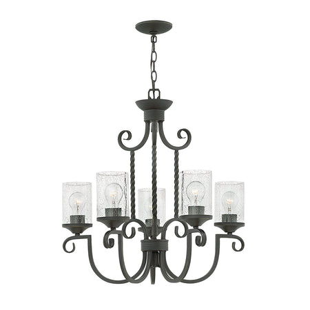 Lampadario Industrial Nordico Casa Alluminio Nero Antico Vetro 5 Luci E27