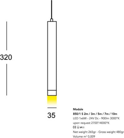 Lampadario moderno Cattaneo illuminazione LINE SYSTEM 850 1S LED 6W 900LM 3000°K sospensione metallo cilindro interni