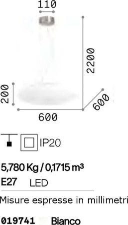 Lampadario moderno Ideal Lux GLORY SP5 019741 E27 LED vetro metallo sospensione