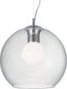 Sospensione a sfera in vetro soffiato trasparente, forma globo, da interni