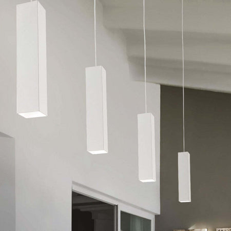 Sospensione a parallelepipedo di metallo bianco o nero attacco GU10 LED da interni