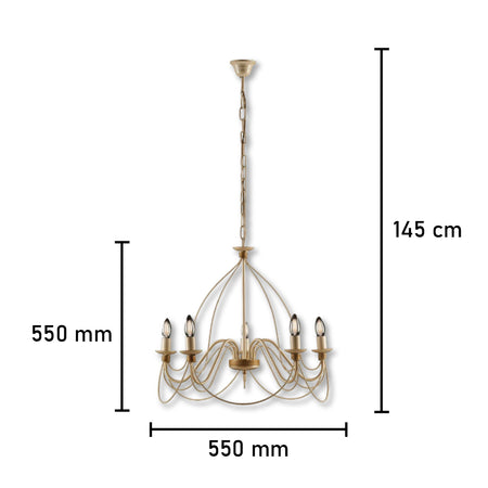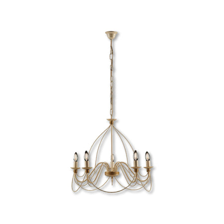 Lampadario Sospensione Metallo Verniciato Assia 5 luci E14 Avorio Oro Classico