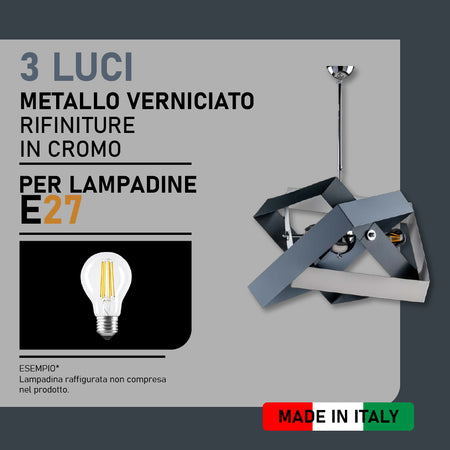 Lampadario Sospensione Metallo verniciato Molly 3 Luci E27 Bianco/Grigio