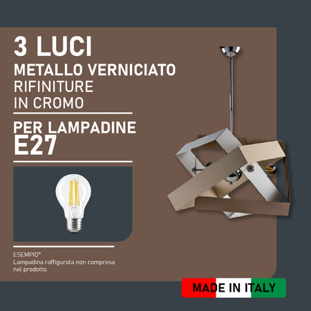 Lampadario Sospensione Metallo Verniciato Molly 3 Luci E27 Bianco/Tortora