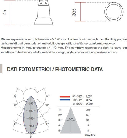Lampadina Belfiore 9010 L007 3.2W LED GU10 220LM luce calda dicroica luce concentrata 220V