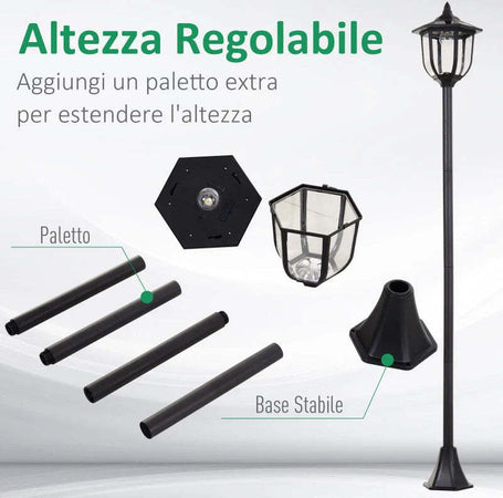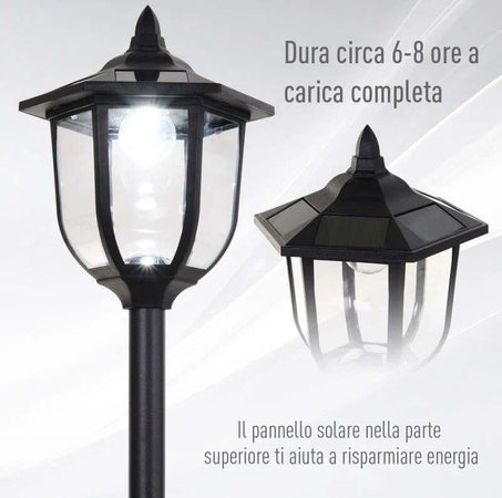 Lampione da Esterni con 6 Luci Led e Pannelli Solari Impermeabile Accensione Automatica Durata 6 Ore Altezza 177cm XC3B30-006XC3