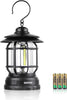 Lanterna da campeggio retrò portatile, luce da tenda COB per campeggio, pesca notturna, illuminazione domestica, emergenza per interruzioni (alimentata a batteria AA, nera)