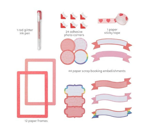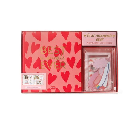 Fuori i ricordi dallo smartphone: è ora di selezionarli, stamparli e renderli perfetti con l'Album Fotografico Best Moments Ever di Legami. Sotto la copertina rigida, 20 pagine da personalizzare con la penna con inchiostro rosso glitterato e tantissimi elementi decorativi. Non sono ancora più belli di quanto ricordassi?Dimensione delle pagine: 21,5 x 23 cmCarta da 180g/m2Può contenere fino a 80 foto da 10 x 15 cmInclude: 1 penna con inchostro rosso glitterato, 1 nastro adesivo in carta, 24 angoli adesivi per fissare le foto all'album, 12 cornici in carta e 44 elementi decorativiAlbum rilegato con chiusura a nastro