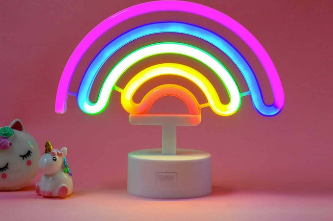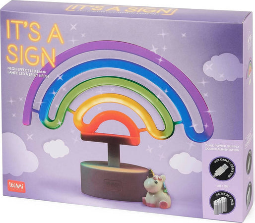 Legami - Lampada Led Effetto Neon, It's a Sign, H 19 cm, Tema Rainbow, Doppia Alimentazione, Cavo USB (Incluso) o Batterie (non Incluse), Lampada da tavolo, Luce Multicolore