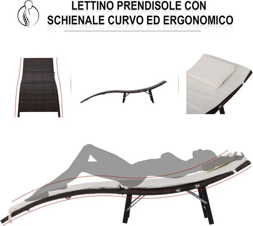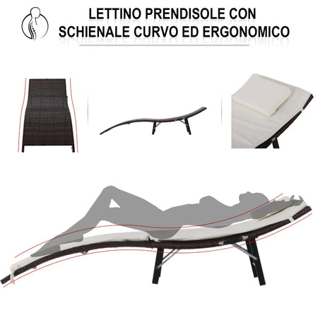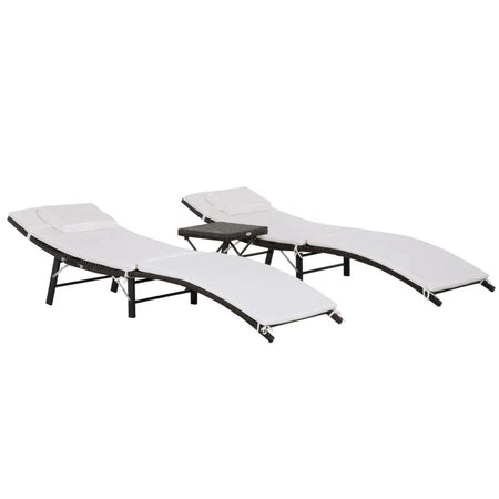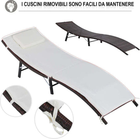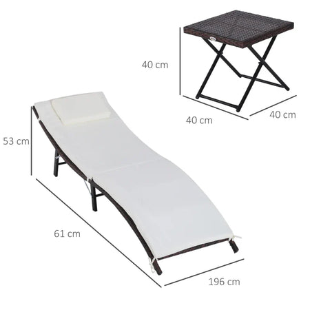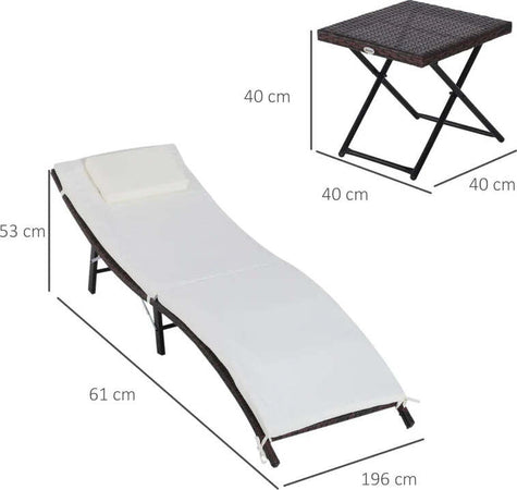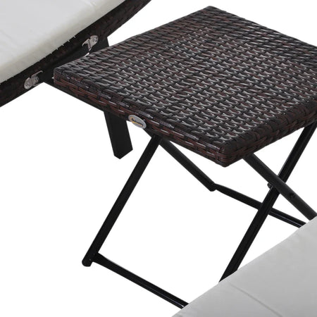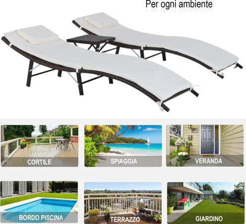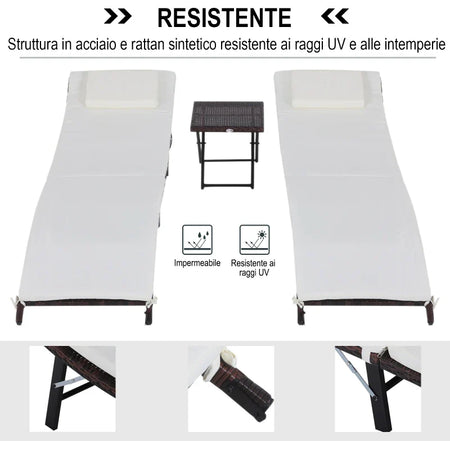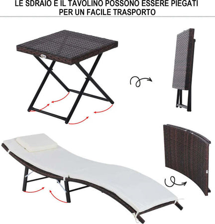 Lettini Prendisole Richiudibili con Cuscini Rimovibili e Tavolino Pieghevole, Set 3 Pz in Rattan, Crema 862-017