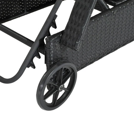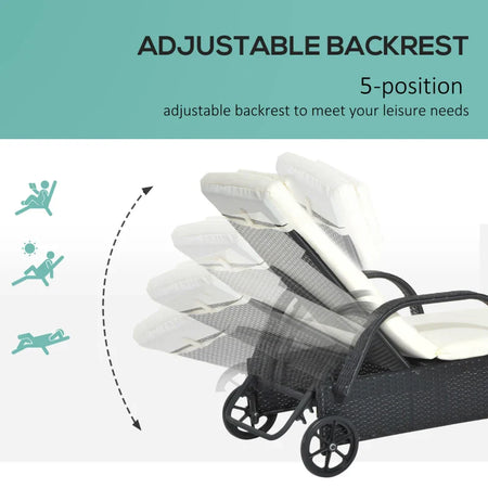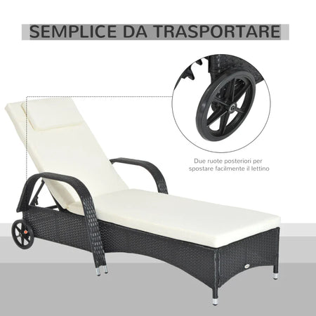 Lettino Prendisole da Giardino con Ruote, Sedia a Sdraio per Spiaggia con Altezza Regolabile in Rattan, Nero e Crema, 200x73x103cm 862-005BK