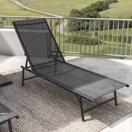 Lettino Sdraio Reclinabile Pieghevole Prendisole in Acciaio Tessuto Traspirante Grigio