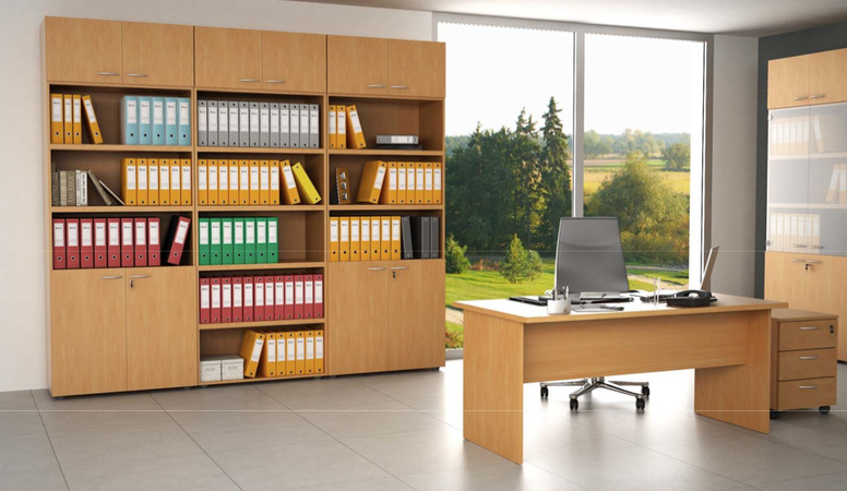 Libreria armadio da ufficio con piani a giorno e ante battenti in legno cm. 90x45,8x200h