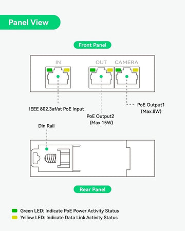 LINOVISION Mini extender POE a 2 porte Ripetitore IEEE 802.3af/at POE