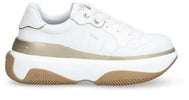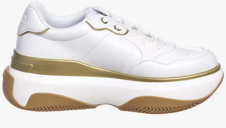 Liujo Donna sneakers bianca con tomaia in pelle e inserto effetto laminato.