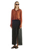 Camicia con colletto, abbottonatura a scomparsa, polsino taglio assimetrico.