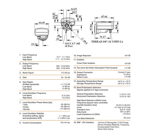 LNB Single 0,3dB per parabole Primo Fuoco e Offset INVACOM SNF-031