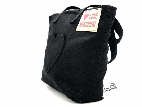 LOVE MOSCHINO: borsa donna in demin nero abbellita con cuore nella parte frontale spaziosa e resistente