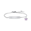 Bracciale Bambina in acciaio con farfalla con smalto viola e piastra personalizzabile. Lunghezza: 14 + 2 cm. Misura farfalla: 7 x 5 mm. Spessore catena: 4 mm. Misura piastra: 29 x 5 mm. Fai brillare il polso della tua piccola principessa con il nostro Bracciale Bambina in Acciaio con Farfalla, Smalto Viola e Piastra Personalizzabile. Questo gioiello incantevole unisce l'eleganza delle farfalle, la vivacità del colore viola e la personalizzazione unica della piastra, rendendolo un tesoro speciale per la tua bambina.