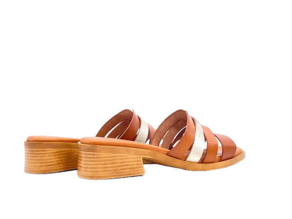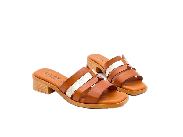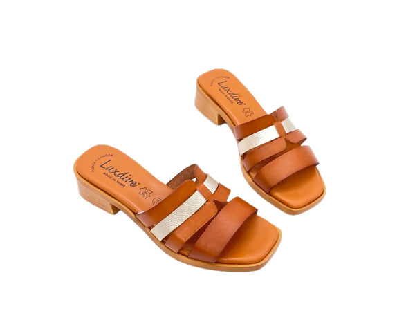 LUXDIVE Ciabattina donna in pelle cuoio e platino