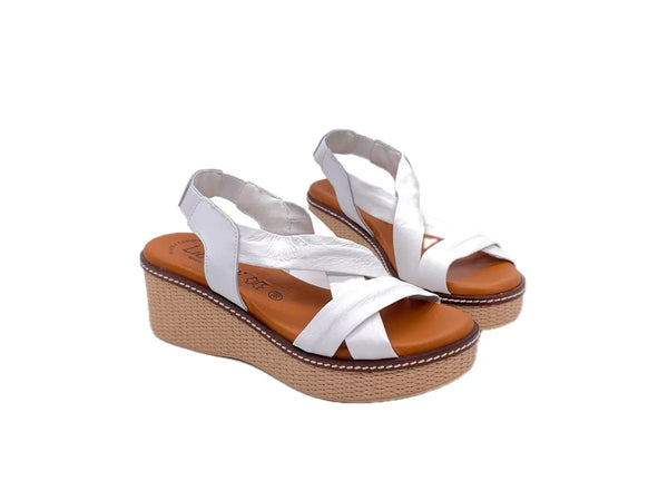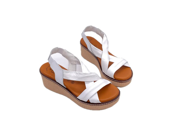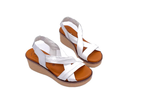 LUXDIVE Sandali donna con fasce incrociate in pelle bianca