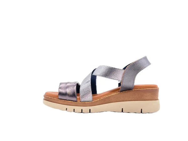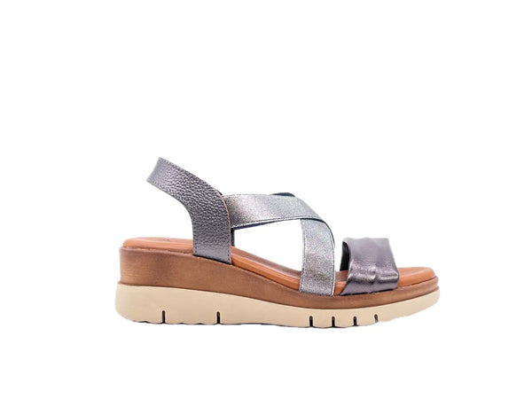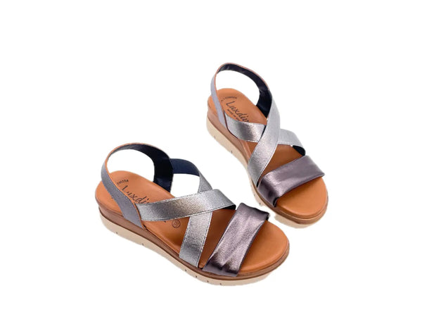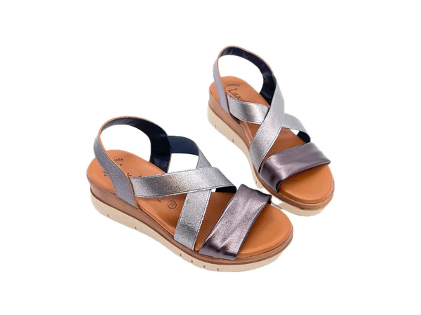 LUXDIVE Sandali donna in pelle e fasce elasticizzate nichel