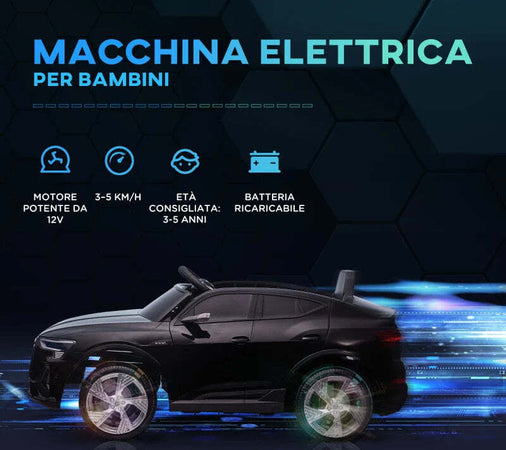 Macchina Elettrica per Bambini 12V con Telecomando, Velocità 3-8km/h, Luci e Musica, Età 3-5 Anni, Nero WS5370-172V90BKWS5