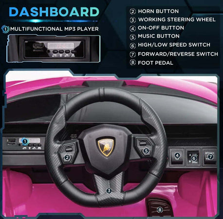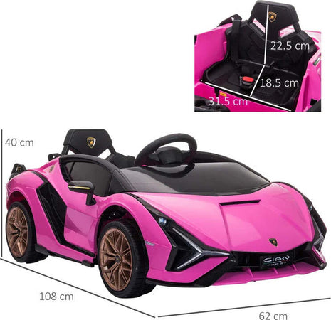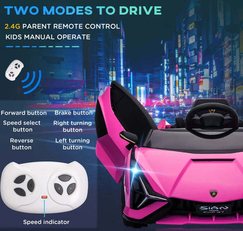 Macchina Elettrica per Bambini 3-5 Anni Lamborghini 12V con Telecomando e Velocità 3-5km/h, Rosa VG1370-171V90PKVG1