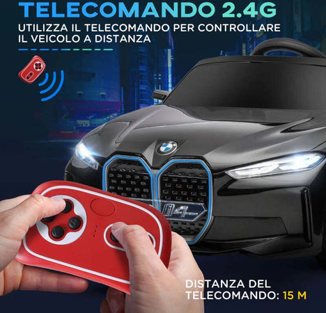 Macchina Elettrica per Bambini 3-6 Anni con Licenza BMW con Telecomando, Clacson e Fari, 115x67x45 cm, Nera HG6370-294V90BKHG6