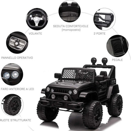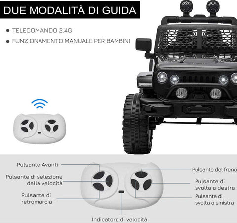 Macchina Elettrica per Bambini 3-6 Anni da 12V con Telecomando, Fari e Clacson, 100x64.2x71 cm, Nero NH9370-150V90BKNH9
